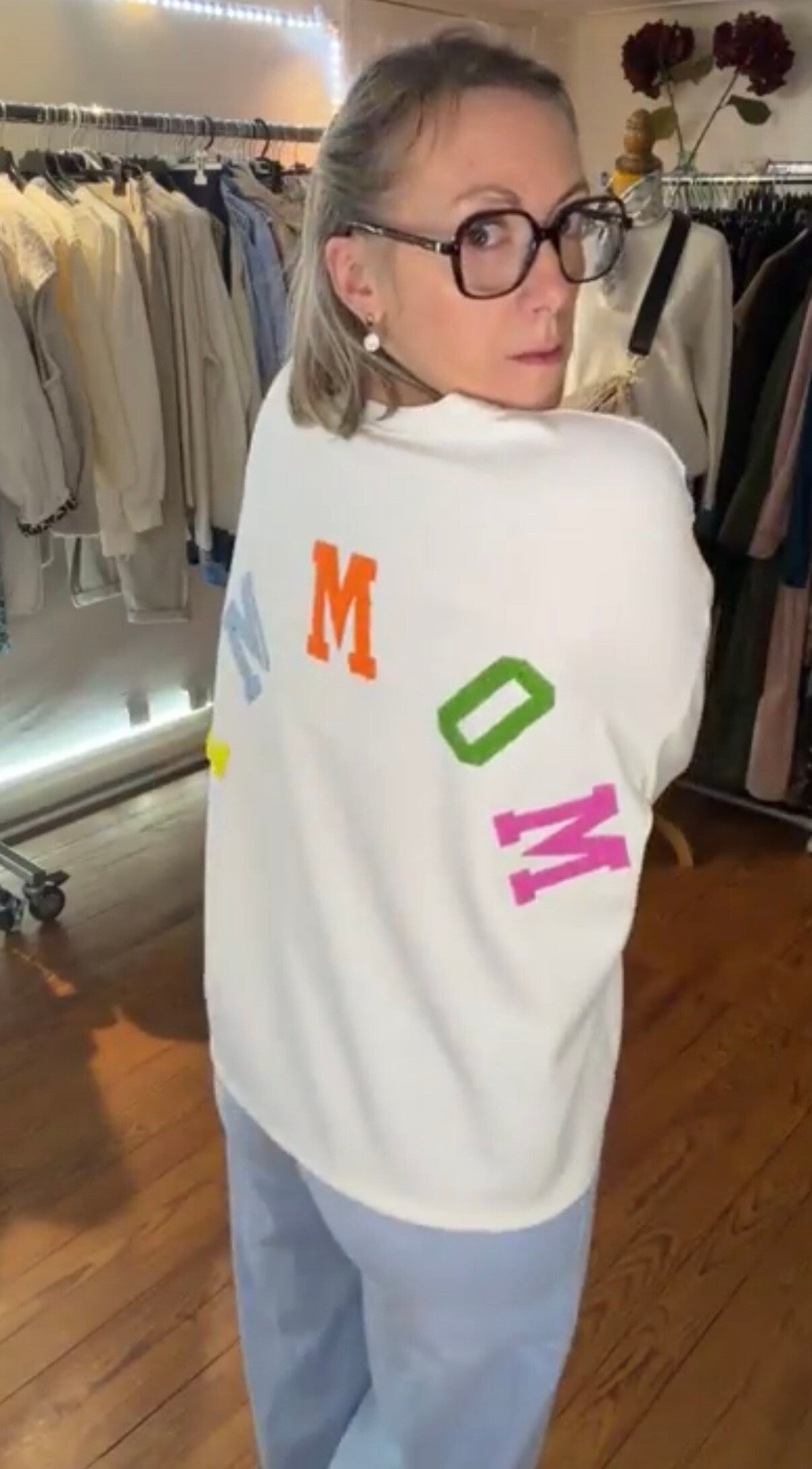 Sweat-shirt mommy blanc décontracté et tendance pour le printemps.
