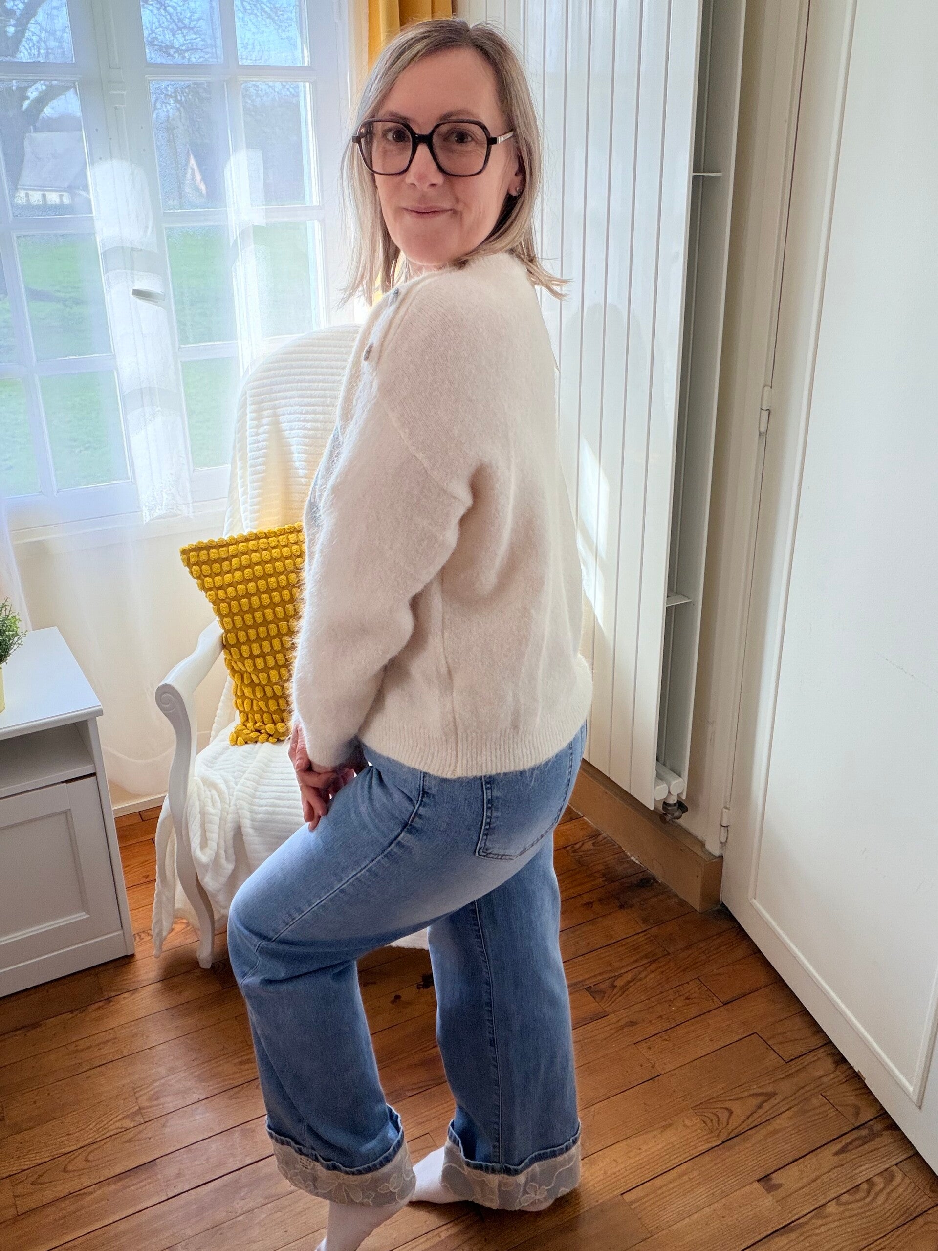 Jeans avec revers dentelle