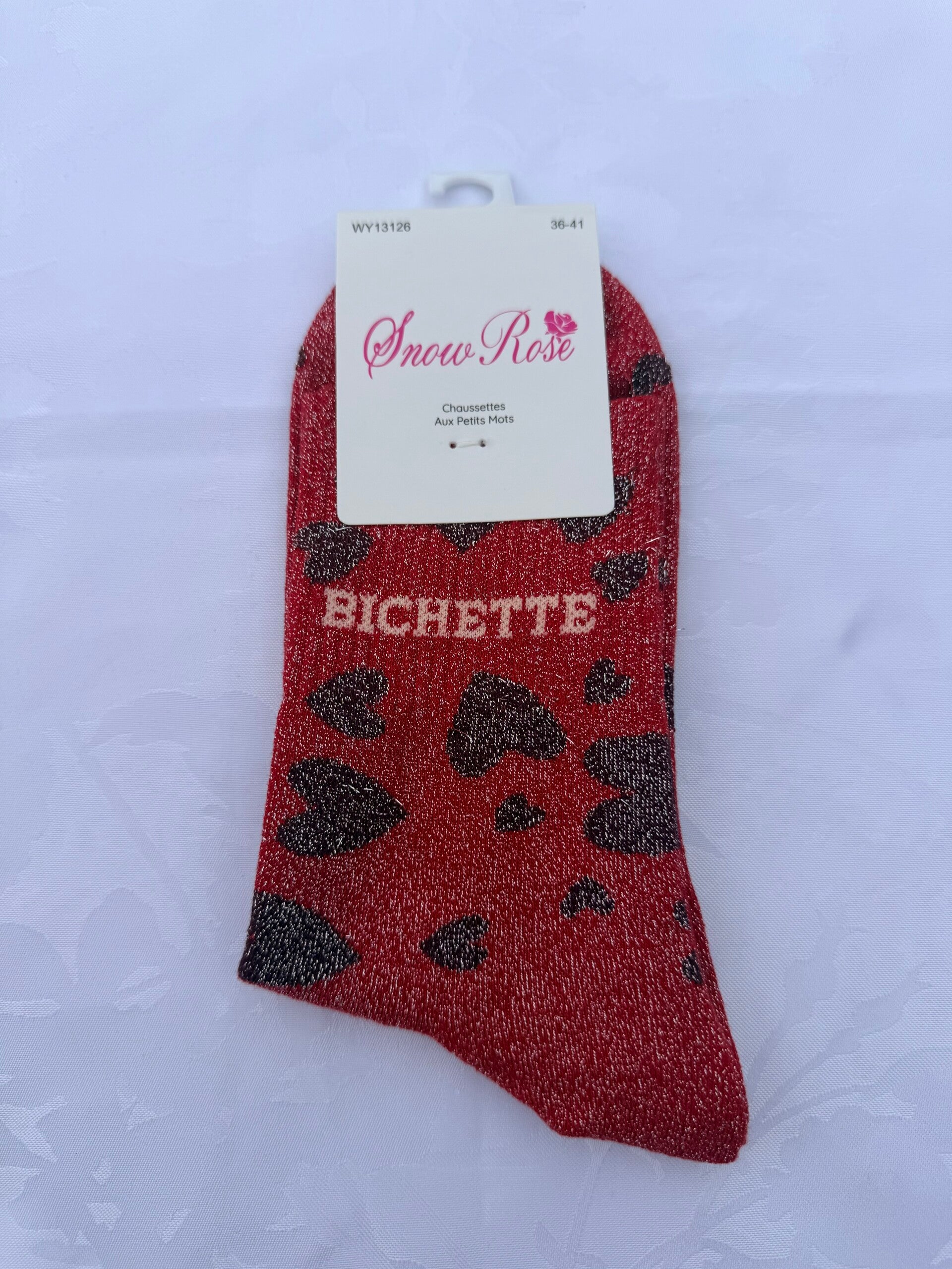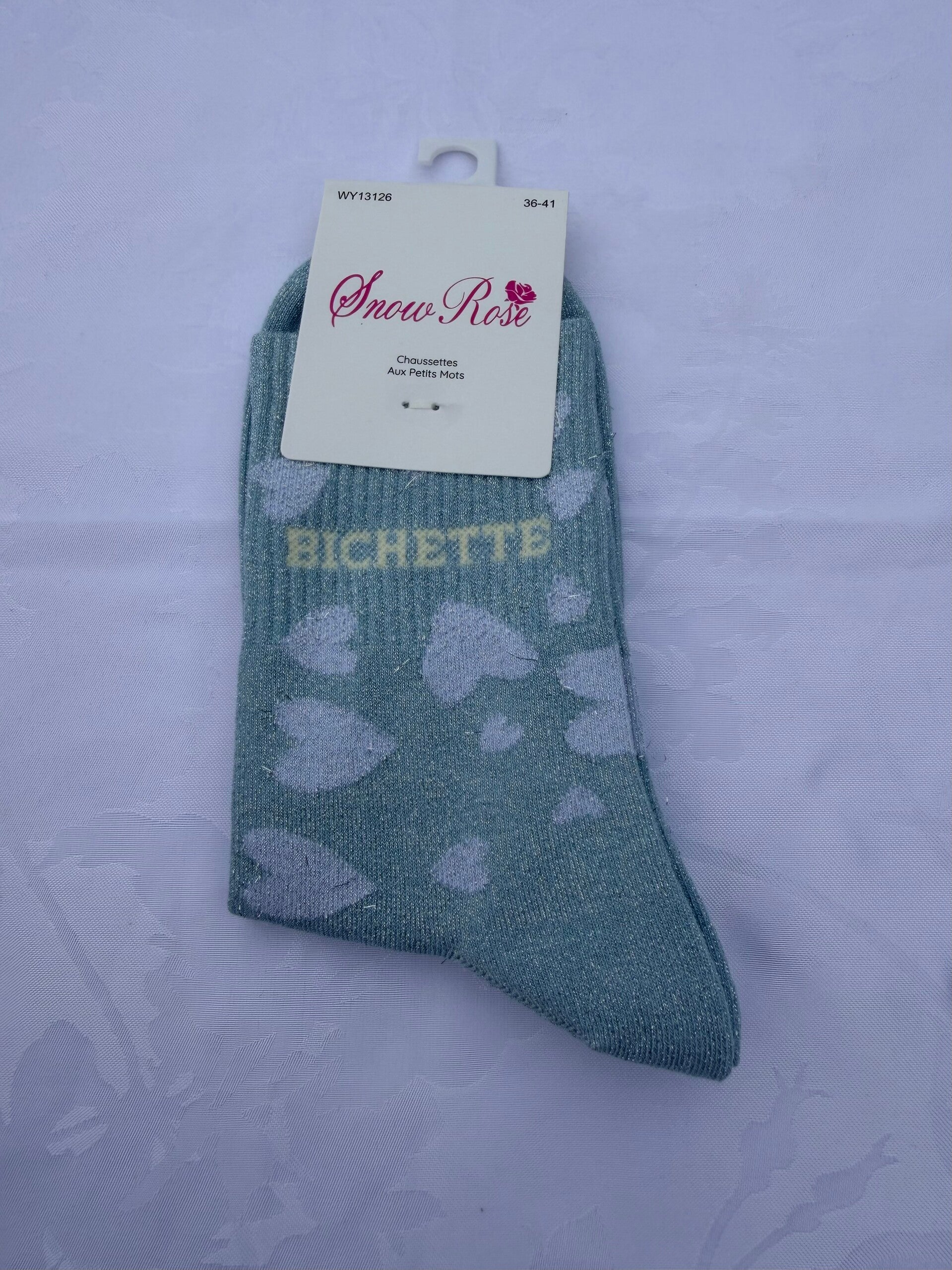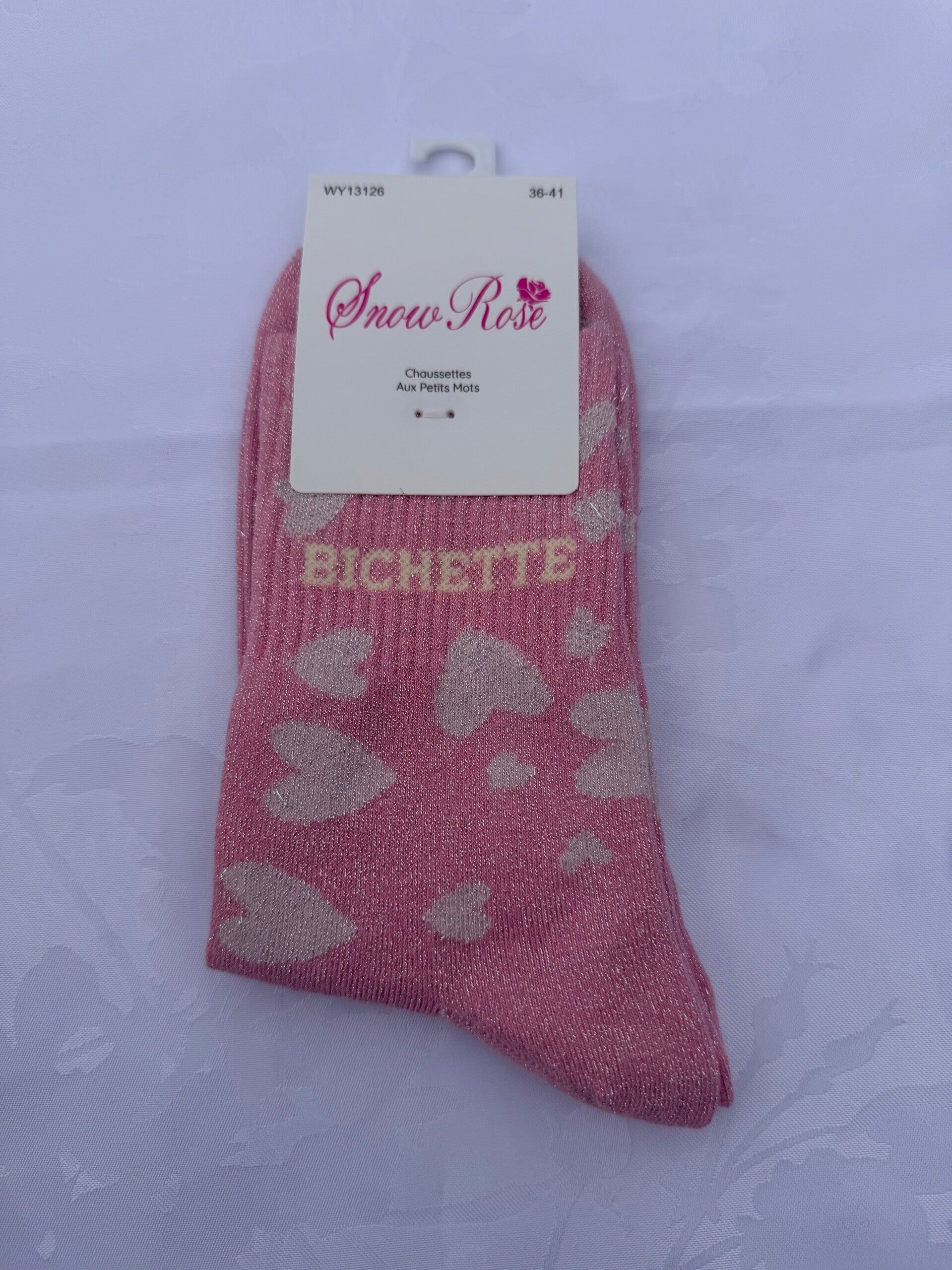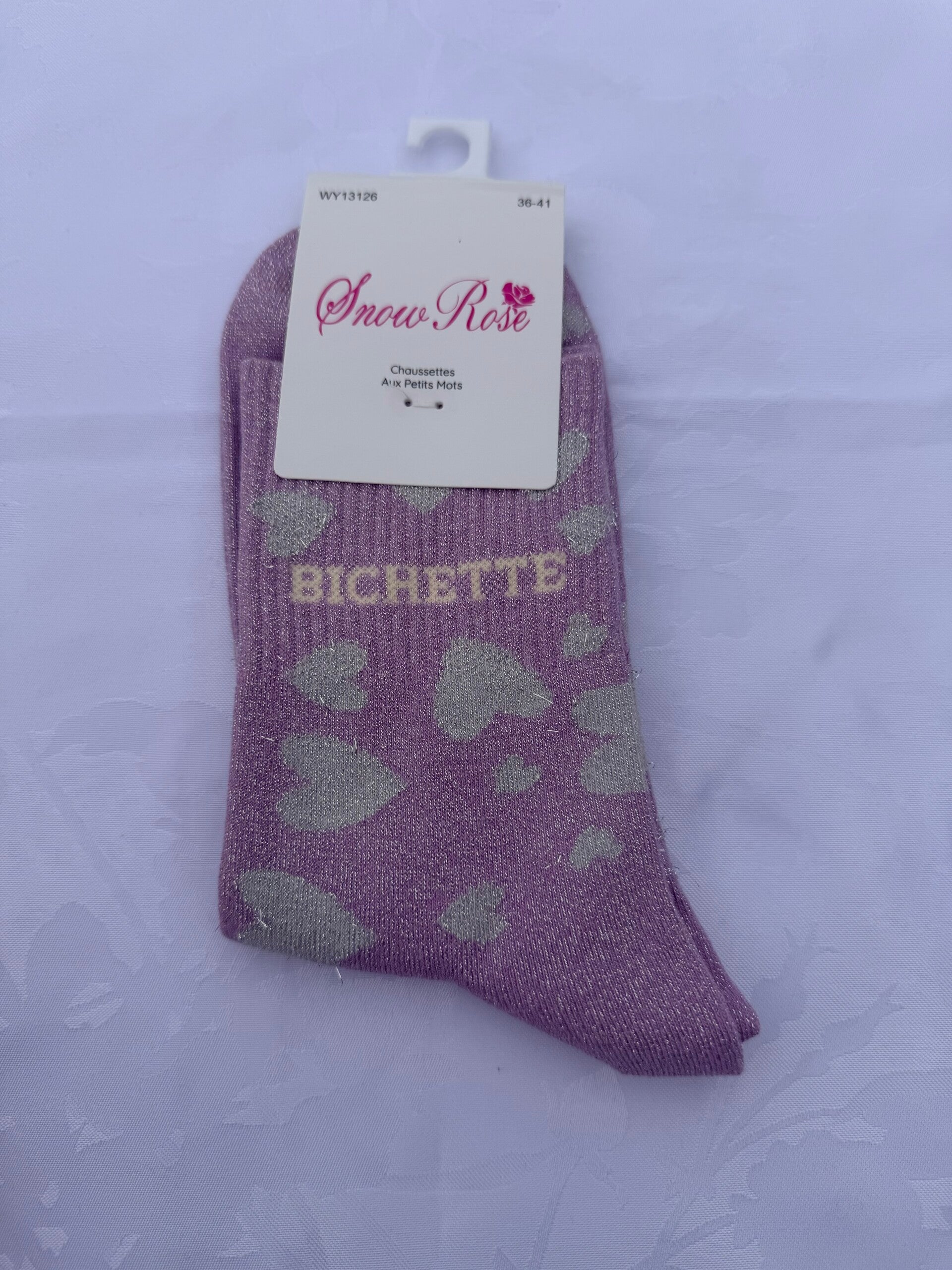 Chaussettes paillettes à cœur inscription bichette