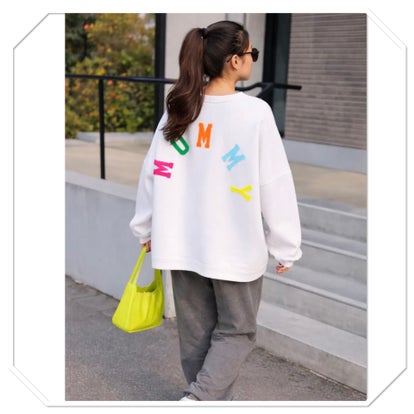 Sweat-shirt mommy blanc décontracté et tendance pour le printemps.